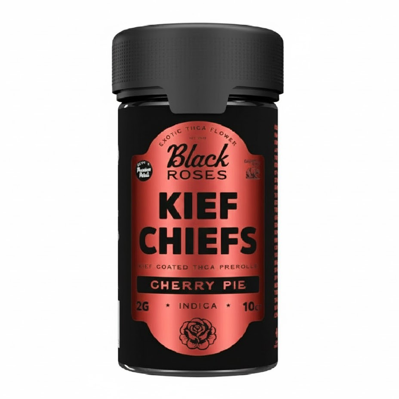 BLACK ROSES KIEF CHIEFS EXOTIC KIEF COATED PRE-ROLLS 2G 10CT JAR – CHERRY PIE INDICA