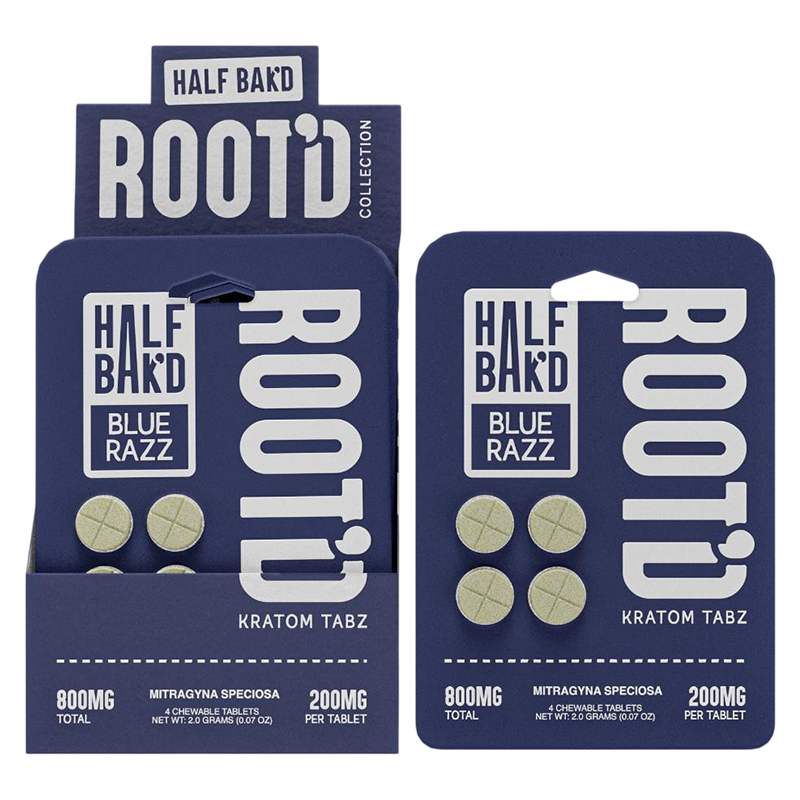 HALF BAKD ROOTD KRATOM TABLETS 200MG 4CT – BLUE RAZZ