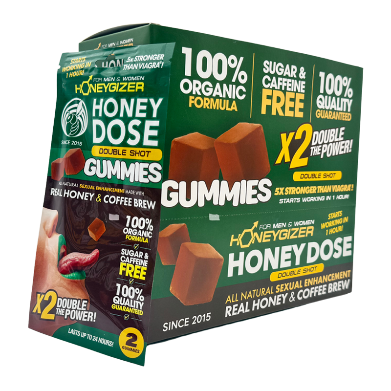 HONEYGIZER FOR MEN & WOMEN DOUBLE SHOT BOX OF 24 – REAL HONEY & COFFEE BREW GUMMIES