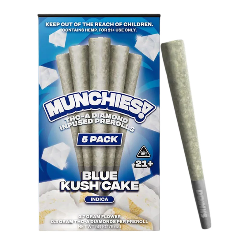 MUNCHIES THC-A DIAMOND PRE-ROLLS 5 PACK – BLUE KUSH CAKE INDICA