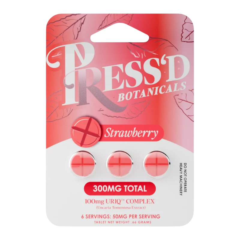 PRESS’D BOTANICALS URIQ COMPLEX EXTRACT TABLETS 100MG 3CT – STRAWBERRY
